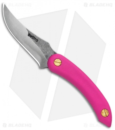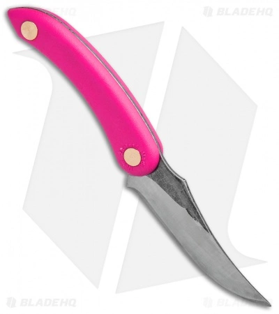 The Svord Amerikiwi features an upswept skinning blade for managing a wide range of hunting and camping chores. This model is built with a pink polypropylene handle. The curved handle rests comfortably in the hand while a thumb ramp provides added leverage for detailed blade work. Item includes a leather belt sheath for comfortable carry.