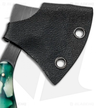 The T.M. Hunt Lil Billy Bad Axe is a mini axe designed for pocket or keychain carry. It features a full-tang O1 steel build with a black finish and a built-in lanyard/key ring hole. Each piece is made with the same incredible attention to detail as the knives, and offers a razor sharp edge for smaller daily cutting tasks. Their small size makes them perfect for keychain, necklace, or pocket/purse carry. Includes a secure Kydex sheath.