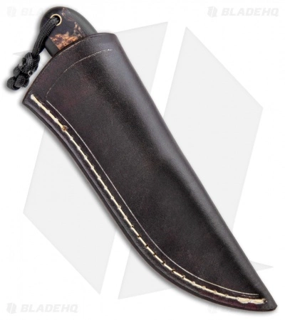 This T.M. Hunt custom fixed blade is sized perfectly for everyday carry and outdoor excursions alike. Its blade is made from black stonewashed, heavy-duty O1 tool steel with jimping on the spine for added control and grip security. The handle is fashioned with smooth black G-10 scales with Voodoo Resins “Pumpkinhead” inlay, shaped for comfortable extended use. Includes a genuine leather belt sheath.