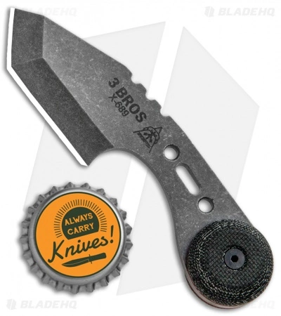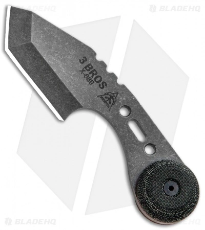 The TOPS 3 Bros fixed is a mini fixed blade that packs a lot of heft into a tiny package. This 3 Bros model is outfitted with a tumbled tanto blade and a black canvas micarta handle piece. Pick up a compact hunting and camping knife with the TOPS 3 Bros fixed blade.
