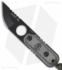 TOPS Knives presents the A.L.R.T (Anywhere Last Resort Tool) XL05 Knife. This fine knife is small and sturdy! Useful in so many situations, as a neck knife, key chain or on your backpack. Knife is 5 3/8″ overall with a 2 3/4″ 1095 high carbon steel blade with black traction coating. Full tang construction with finger hole for added control. Handle is Black Linen Micarta®. Includes Kydex sheath with lanyard hole, ball chain and carabiner clip.