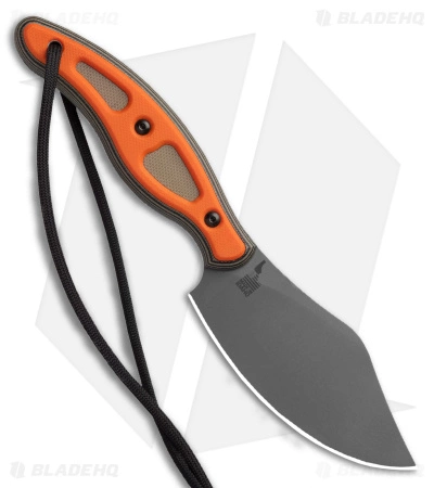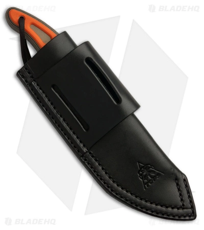 - Black and tan G-10 handle scales with a high-visibility orange overlay.