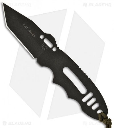 The C.A.T. #202 is a small, strong and highly versatile knife that is easy to use and maintain. Low profile carry and easy to draw when needed. Tanto point blade and skeletonized handle. Kydex sheath with 360 degree positioning.