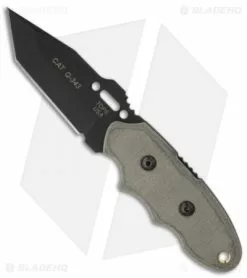 The C.A.T. #203 is a small, strong and highly versatile knife that is easy to use and maintain. Black traction coated Tanto point blade and full-tang handle with black linen Micarta scales. Kydex sheath with rotating steel spring clip.