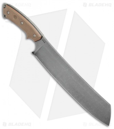 The TOPS El Chete is a massive fixed blade designed to make quick work of any chopping task. Its blade is fashioned from full-tang, quarter-inch thick 1095 tool steel in an “Acid Rain” finish. The sandwiched Canvas Micarta handle is shaped to fit the hand like a hatchet or small ax handle for comfortable and secure use. This beastly chopping knife includes an out-the-front designed Kydex sheath with a spring steel belt clip attachment.