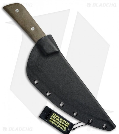 The Frog Market Special XL from TOPS Knives was designed after a unique style of knife used by butchers and fish mongers in Vietnam. This XL version adds a bit of weight and a lot of blade to an already proven design. Great in the kitchen, camp kit, or if you’re really adventurous—as an EDC fixed blade. The Frog Market Special XL includes a secure Kydex sheath with a belt clip attachment.