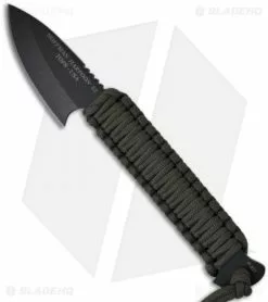 Features a 3.25″ 1095 high carbon steel blade with black traction coating. Full tang construction with paracord wrapped handle. Includes a nylon neck sheath, Lansky Quick Fix sharpener kit, field fire starter kit and can opener!