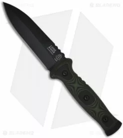The Lone Rider is a burly knife, built from a 1/4″ thick piece of 1095 steel that has a black traction coating. The spear point blade has a plain edge for great general purpose utility and thumb notching on the spine to choke up on. The green/black layered G-10 handle is ergonomically shaped and has a pry-splitter end. Includes a kydex sheath with rotating steel spring clip for convenient carry.
