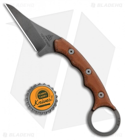 The TOPS Poker is a fixed blade knife that can do it all. It’s small and comes with a horizontal Kydex sheath, so it’s easy to carry every day. The blade is a thin and tapering Wharncliffe that can handle any EDC task, but can be used for self defense in a pinch. The handle provides good purchase in a front hand or back hand grip. The knife will stay securely in your hand with the karambit ring.