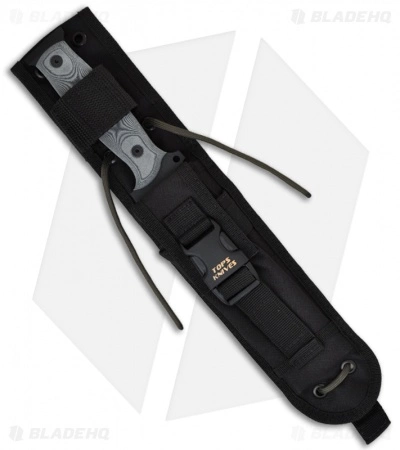 The Screaming Eagle from TOPS Knives has been crafted from a 1/4″ thick 5160 steel. It has a black traction coated tanto point blade with a plain lower and upper edge for a wide range of tasks. The black linen Micarta scales sit atop a full-tang handle that is well-shaped and contoured for a comfortable grip. The end of the handle has a pry-splitter. Includes a heavy duty sheath as pictured above. This is a knife that you can count on to do the job and never let you down.