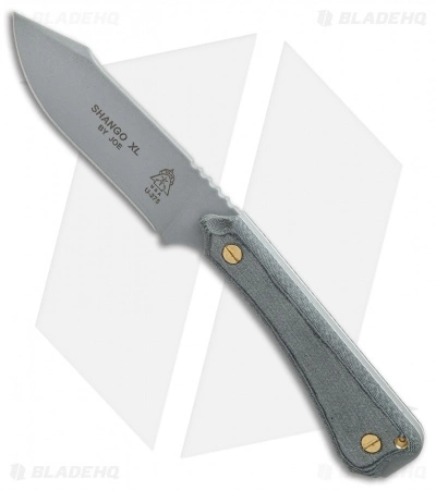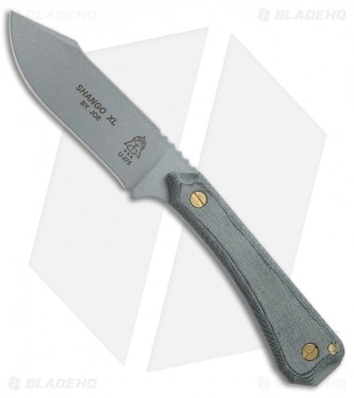 The Shango XL adds cutting real-estate and extra handle displacement, along with Micarta scales, to the original Shango fixed blade. The biggest difference is in the grind. Joe Flowers, the designer, specified that the knife have a more accurate angle for a final edge on this flat grind workhorse. As a result, it excels at carving and sharpening. Of course, this wouldn’t be the Shango, without the Shango Notch, cleverly designed by TOPS and Joe. The notch throws out major sparks, despite the roomy 5 inch Micarta handle. This handle has enough room for every hand out there. The large back end, allows for more grip when you need to get that extra power during light chopping. Removeable screws give the end user the option of placing a small ferrocium rod inside a secret slot without fully removing the scales. A nylon sheath is included.