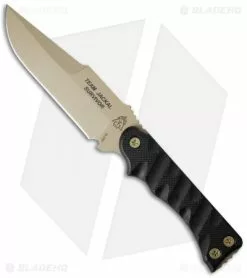 The Team Jackal Survivor is a coyote tan powder coated version of the original knife. It boasts a textured, Rocky Mountain Tread black G-10 handle with red liners. This knife strikes the optimal size for a combat duty fixed blade without weighing you down unnecessarily. Includes a Kydex sheath with metal belt clip.
