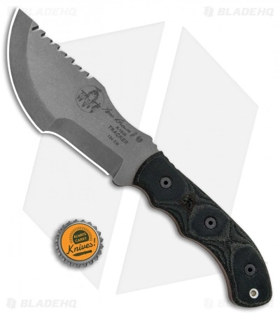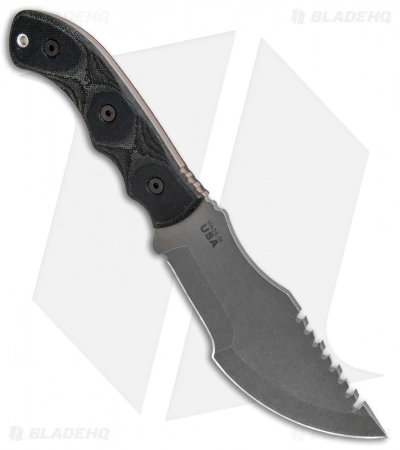 This Tom Brown Tracker #3 model is built with a black micarta handle and a gray coated blade.