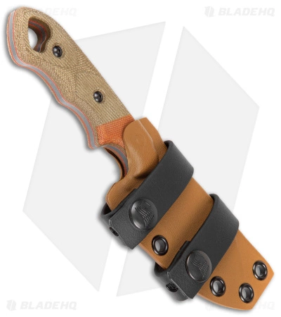 - Tan and green micarta handle that offers a secure, ergonomic grip.
