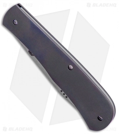 This Kit slip joint folder from Trash Panda Knives sports a purple anodized titanium handle and a tumbled AEB-L steel clip point blade. The Kit is a custom slip joint folding knife built with two rounded titanium handle slabs that offer a full, comfortable grip. Its blade does away with standard nail nick openers in favor of a unique three-hole design for easy “pinch grip” opening.