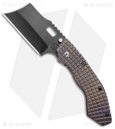 The Trouble Blades Debt Collector is a heavy-duty folding cleaver knife. This Large folder features a full titanium frame lock handle with a frag pattern design and a bronz/purple finish. Its thick Cru-Wear steel blade comes in a dark finish and has a long section of jimping along the spine. Trouble Blades’ Debt Collector is a rugged, dependable knife that won’t disappoint.