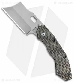 The Trouble Blades Debt Collector is a heavy-duty folding cleaver knife. This Large folder features a full titanium frame lock handle with a dimpled pattern design and a bronzed finish. Its thick Cru-Wear steel blade comes in a matte finish and has a long section of jimping along the spine. Trouble Blades’ Debt Collector is a rugged, dependable knife that won’t disappoint.