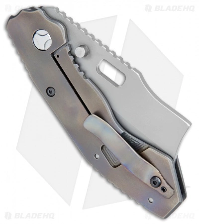 The Trouble Blades Debt Collector is a heavy-duty folding cleaver knife. This Large folder features a full titanium frame lock handle with a frag pattern design and a bronzed finish. Its thick Cru-Wear steel blade comes in a matte finish and has a long section of jimping along the spine. Trouble Blades’ Debt Collector is a rugged, dependable knife that won’t disappoint.