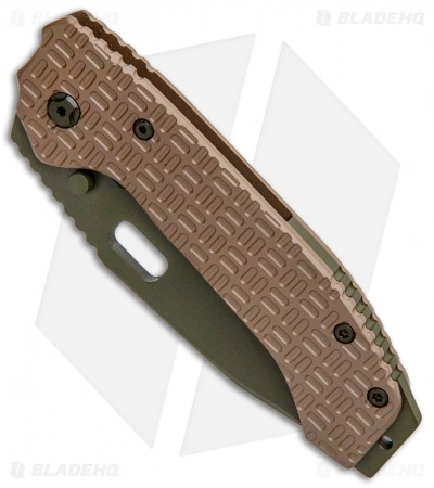 The Trouble Blades Mofo is a heavy-duty folding knife equipped with a wide-bellied clip point blade. This Large folder features a full titanium frame lock handle with a bronze frag pattern design. Its thick Cru-Wear steel blade comes in a satin finish and has a long section of jimping along the spine. Trouble Blades’ Mofo is a rugged, dependable knife that won’t disappoint.