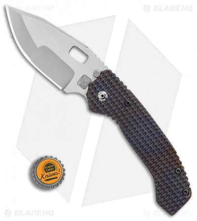 The Trouble Blades Mofo is a heavy-duty folding knife equipped with a wide-bellied clip point blade with a compound grind. This Large folder features a full titanium frame lock handle with a flamed, 911 pattern design. Its thick Cru-Wear steel blade comes in a two-tone bead blast and satin finish. Trouble Blades’ Mofo is a rugged, dependable knife that won’t disappoint.