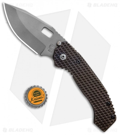 The Trouble Blades Mofo is a heavy-duty folding knife equipped with a wide-bellied clip point blade. This large folder features a full titanium frame lock handle with a bronzed 911 pattern design and a black G-10 backspacer. Its thick CPM-4V steel blade comes in a bead blasted finish and has a long section of jimping along the spine. Trouble Blades’ Mofo is a rugged, dependable knife that won’t disappoint.