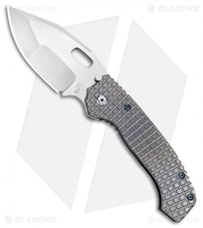 The Trouble Blades Mofo is a heavy-duty folding knife equipped with a wide-bellied clip point blade. This Large folder features a full titanium frame lock handle with a bronzed frag pattern design and a brass/copper backspacer. Its thick SpecWear steel blade has a “Wet Dream” grind, swedge, and satin finish. Trouble Blades’ Mofo is a rugged, dependable knife that won’t disappoint.