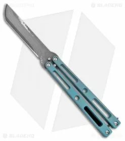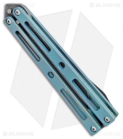 This VMX Butterfly knife sports a green stonewashed titanium handle and a Takefu SG2 San Mai tanto blade.