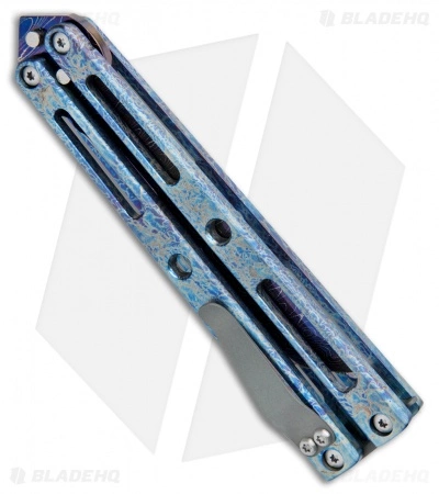 This VMX Butterfly knife sports a “Tesla” finished titanium handle and a Chad Nichols “Blackout” Damascus tanto blade.