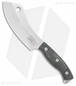 The White River Camp Cleaver offers a versatile camping and hunting tool for cutting, chopping, and skinning. This model is built with black burlap micarta scales and a stonewashed S35VN steel cleaver blade. The ergonomic handle design is comfortable to use and easy to manipulate. Item includes a custom leather sheath.
