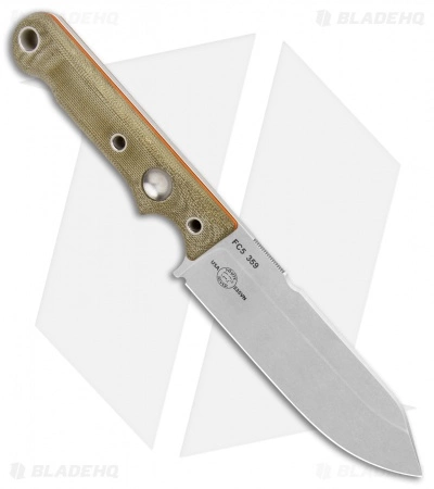 This FC5 Firecraft model comes equipped with a 5″ stonewashed S35VN steel blade and an OD green micarta handle.