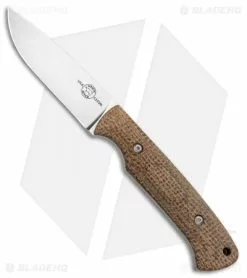 The White River Hunter was designed for processing game of any size while also managing any outdoor cutting tasks that may come your way. This model is built with a natural burlap micarta handle and a satin polished S35VN steel blade. Subtle contouring and an index choil provide a secure grip in difficult conditions. A flat ground blade and curved edge offer versatile cutting performance. Item includes a custom leather belt sheath.