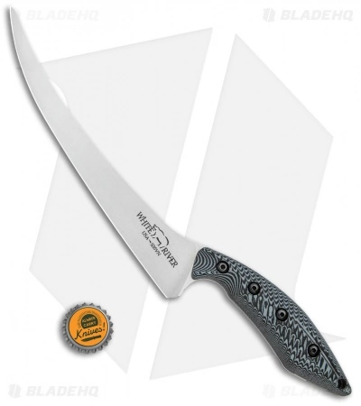 This 8.5″ Fillet knife has a black and gray G-10 handle for extreme durability and includes the White River “Stay Put” leather sheath.