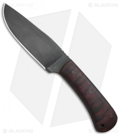 The Hunting Knife combines features from the Belt Knife & Field Knife. The no-glare black Caswell finished blade has flat ground edges and a notched spine for thumb stability. The handle sports Maple scales with pins and a lanyard hole. The Hunting Knife comes with a brown leather sheath.